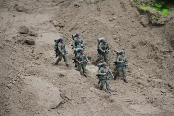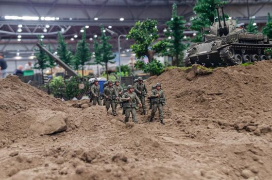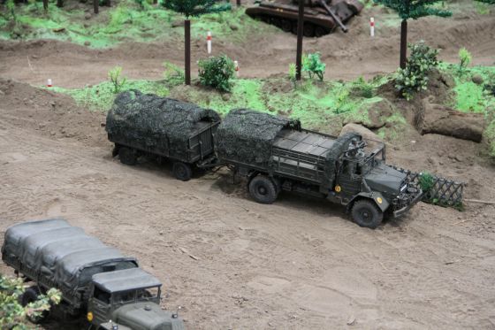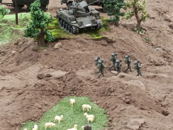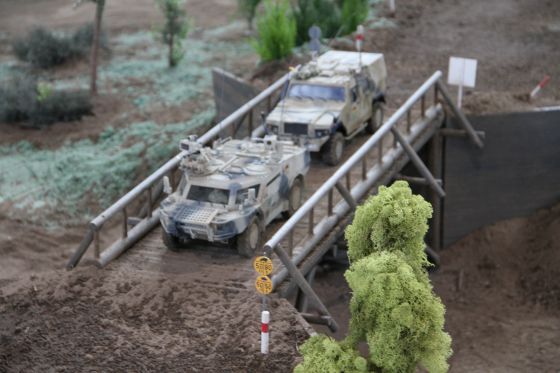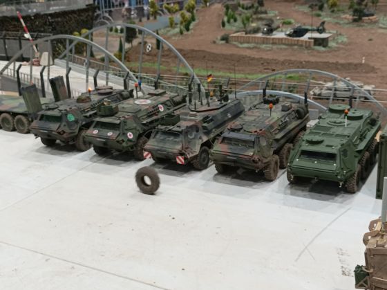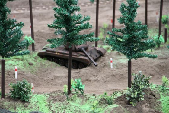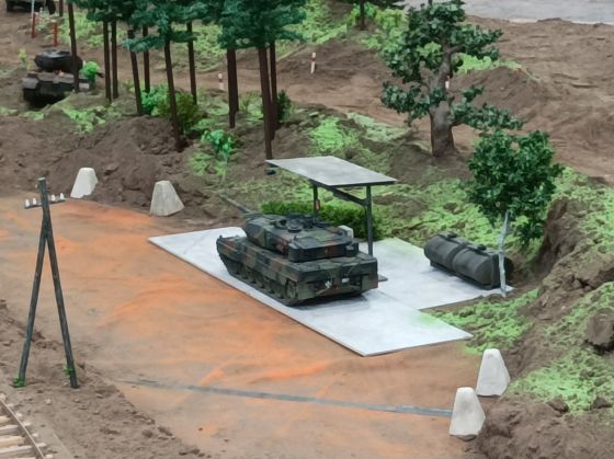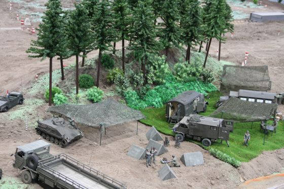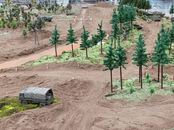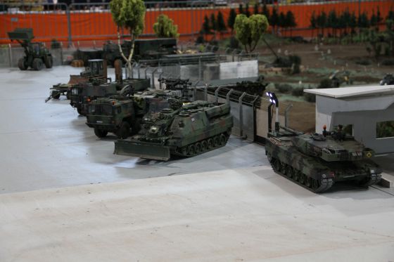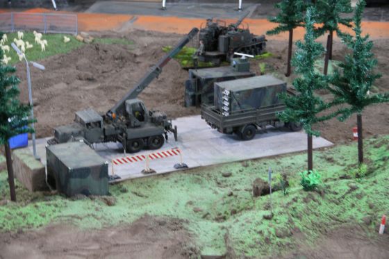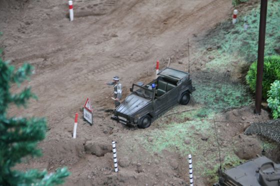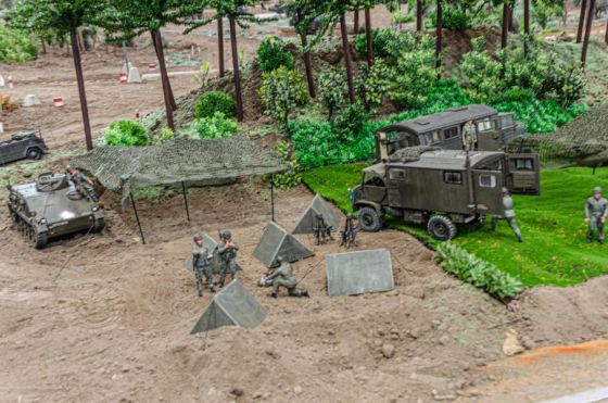 Neben einigen neuen Modellen ist den Besuchern vor Allem das neue Konzept unseres Geländes positiv ins Auge gestochen. So waren diese Mal viele kleine Diorahmen aus dem täglichen Leben der Bundeswehr über das Gelände verteilt , die mit viel Liebe zum Detail gestaltet und so in das Gelände integriert wurden , dass es eine große Einheit als Truppenübungsplatz darstellte.
