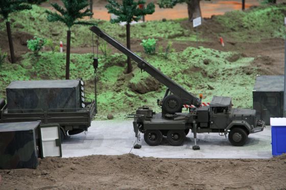 Natürlich durfte auch der große technische Bereich nicht fehlen , in dem immer wieder Modelle bewegt wurden und verschiedene Aktionen aus dem Bereich der technischen und logistischen Truppe der Bundeswehr vorgeführt wurden.